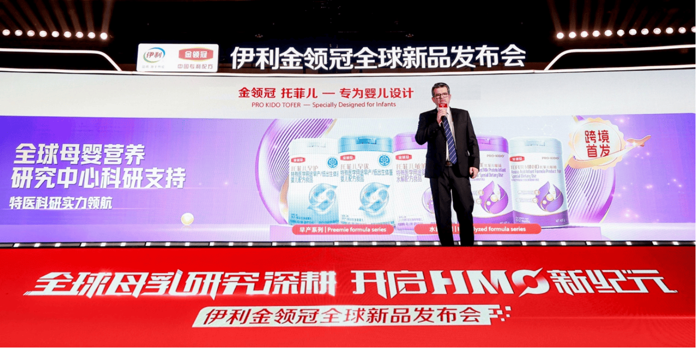 伊利大洋洲創新中心負責人Dr. Philip Wescombe現場介紹了伊利海外創新中心的布局以及母乳研究的成果與突破,並發布了兩款由新西蘭進口的跨境特醫嬰配粉新品 —— 金領冠托菲兒敏益、金領冠托菲兒敏初,進一步完善了伊利金領冠針對特殊營養需求嬰幼兒的專業產品矩陣,讓更多面臨喂養挑戰的寶寶補充營養,助力他們健康成長。
