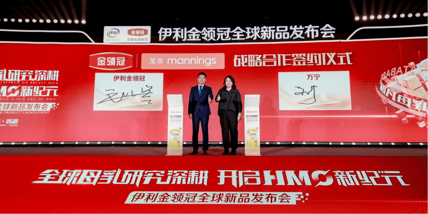 發布會上,伊利金領冠官宣與萬寧達成戰略合作,並舉行了隆重的合作簽約儀式,新品珍護鉑金將於6月全面進入香港200余家萬寧門店及線上銷售。